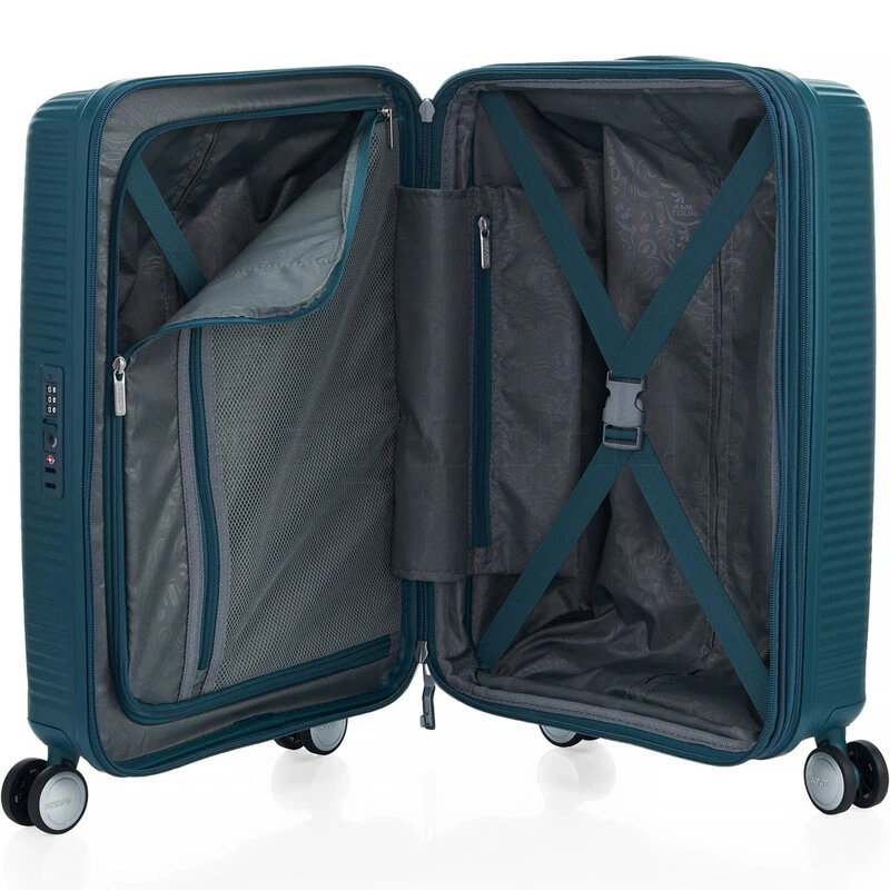 The award-winning American Tourister Curio luggage design has now been upgraded with recycled interior lining and Duosafâ„¢ security zipper. Other American Tourister Curio 2 suitcase features include an expandable zipper, premium interior organiser with mesh dividers and multiple pockets to keep your belongings organised, and double wheels to ensure smooth rolling comfort.