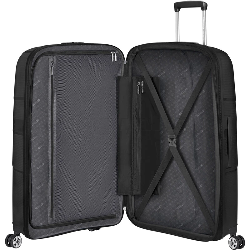 American Tourister Starvibe Hardside Suitcase Set Of 3 Black 46370, 46371, 46372 With FREE Worldwide USB Charging Adaptor 86350