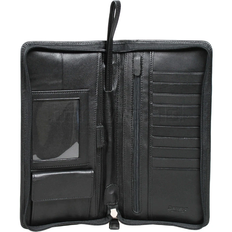 This zippered fine leather travel wallet will stylishly hold your tickets and passport with the added benefit of an inside security section, small coin purse, identity card window, elasticised penholder and room for an electronic hotel key or pass. The retractable handles make it easy to carry or store in your hand luggage.