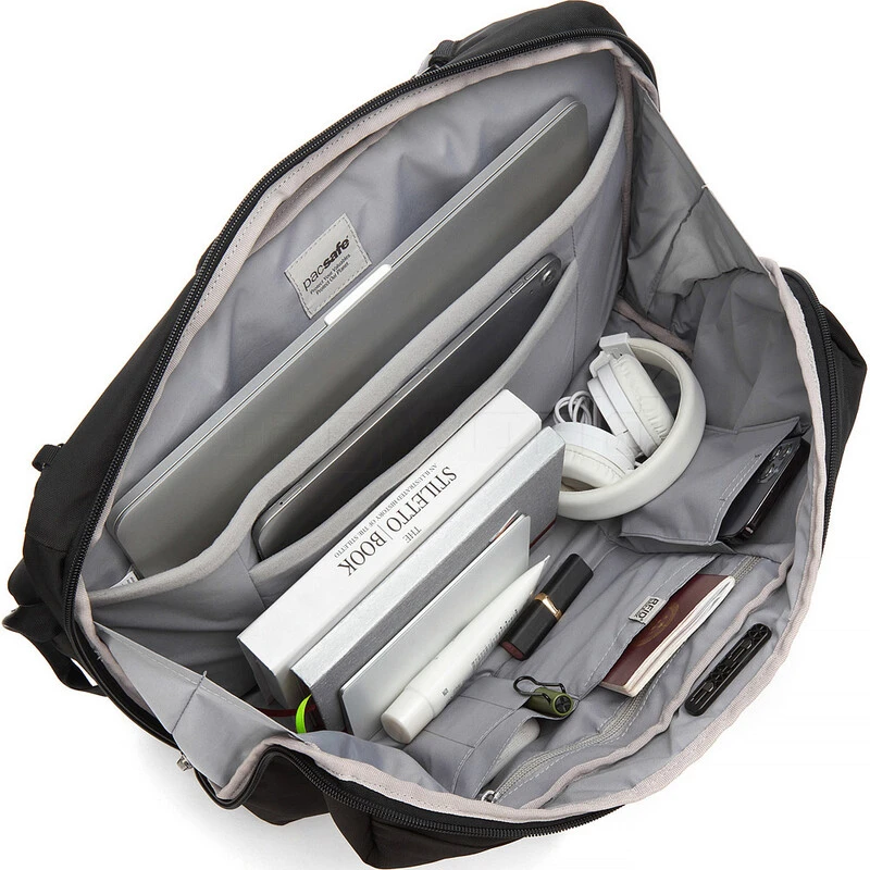 The Pacsafe Metrosafe X Commuter backpack has a slim profile allows for easy movements through busy areas such as subways, city streets, and the airport, making it the perfect companion for city dwellers and commuters. The 18L capacity of this anti-theft backpack holds more than you think, with separate padded compartments for a 16″ laptop and 11″ tablet, and several internal pockets for your gadgets, cables, and on-the-go gear. The unique sideways wide opening also makes it very easy for you to access your belongings with minimal hassle. Not only is the bag packed with function, it’s packed full of Pacsafe security features.