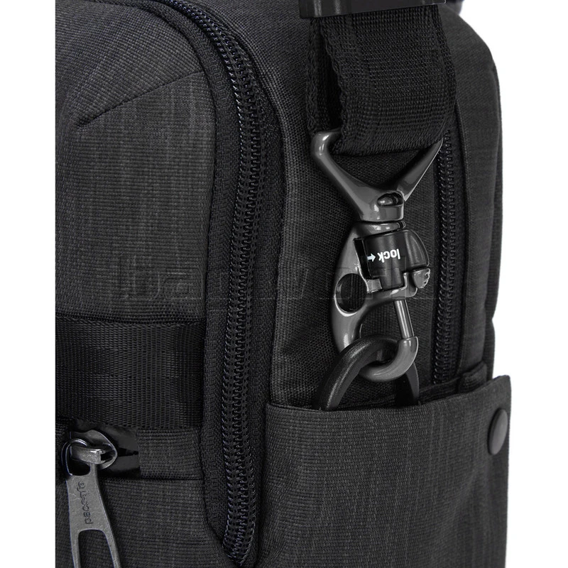 - Turn & Lock Security Hook – The shoulder strap has a releasable security hook at one end that allows you to attach the strap to a fixture to stop thieves from easily walking off with your bag