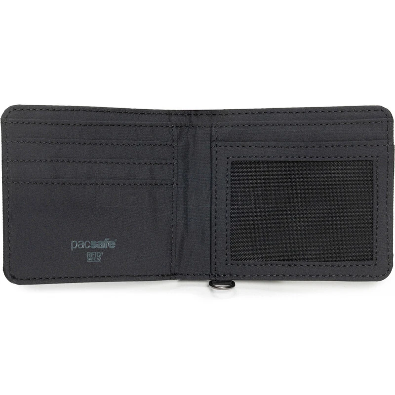 Sort your cards and cash in the slim RFIDsafe RFID Blocking Bi-Fold Wallet. This bifold wallet fits all currencies, has 3 credit cards slots plus an ID window. An attachment point for a cut-resistant strap (sold separately) allows for an added layer of protection.
