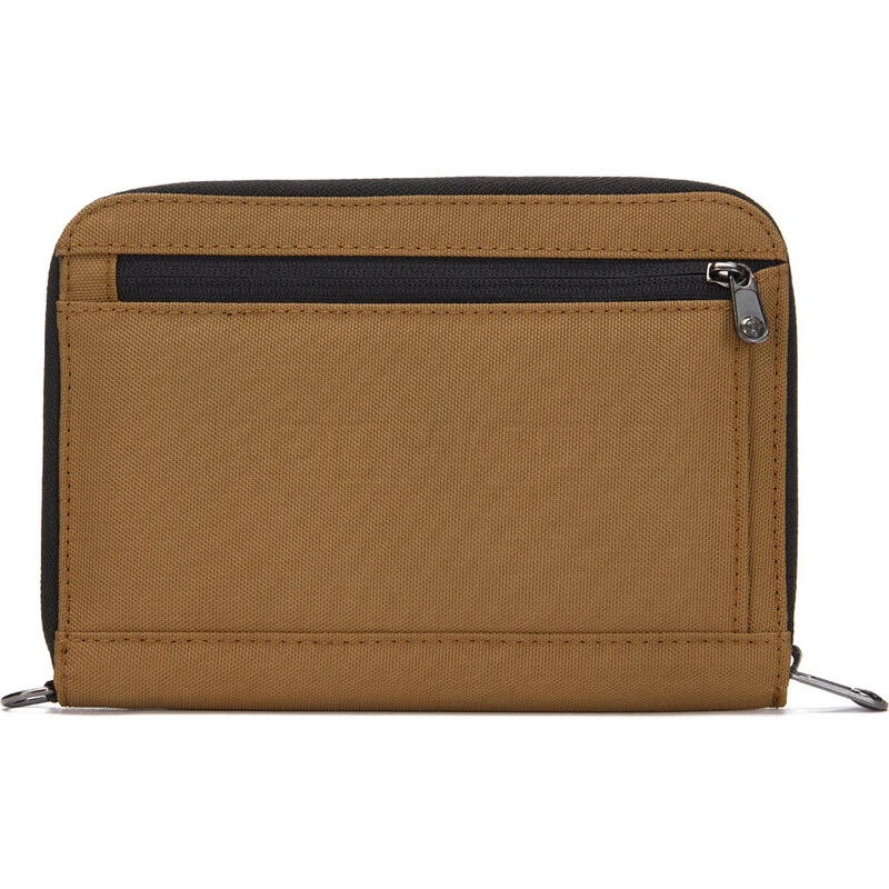 Sort your travel essentials into a zip folder that protects the information stored on your passport and cards. The RFIDsafe Compact Travel Organiser is made from RFID blocking material and has compartments for multiple currencies, space for a boarding pass and more.