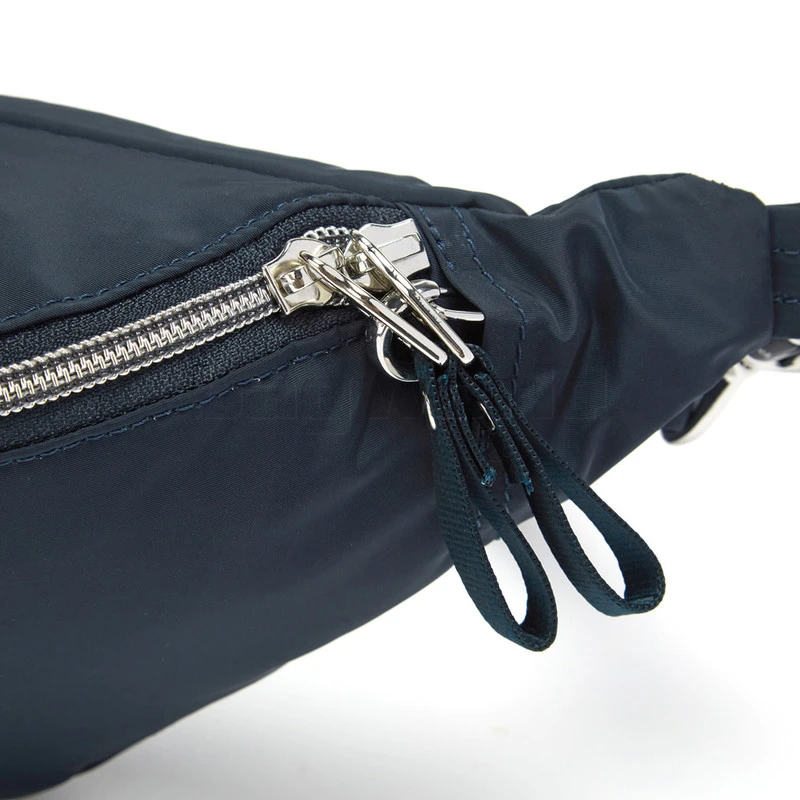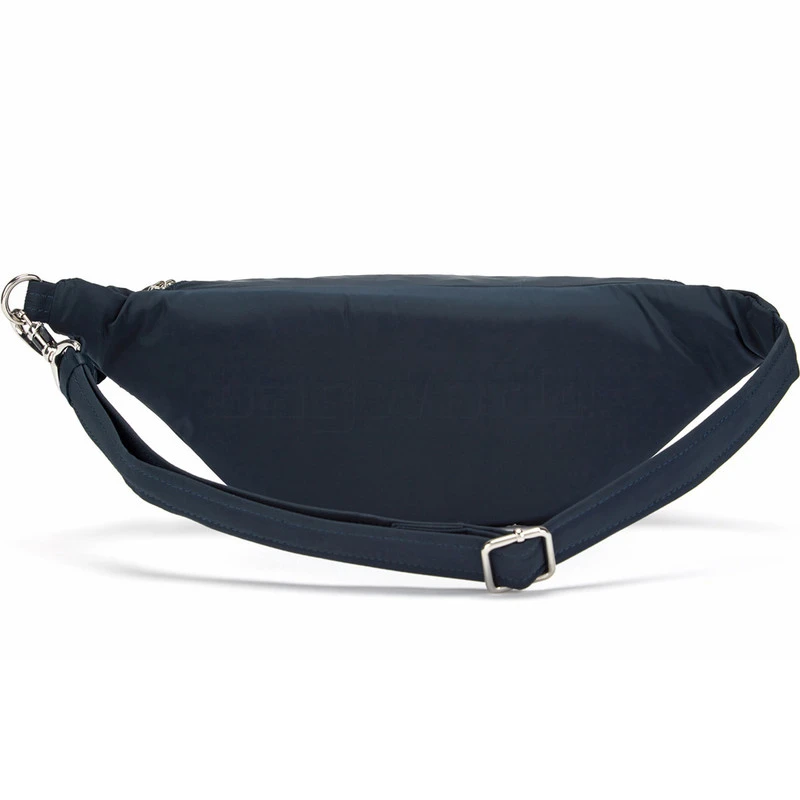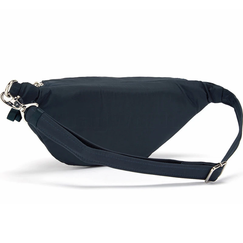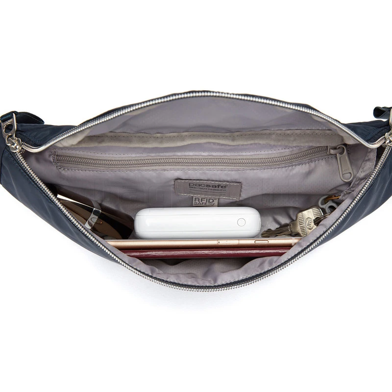 A stylish and secure Pacsafe Stylesafe Anti-Theft Sling Pack for always-moving city life. This compact anti-theft bag can be worn safe against your front, or around your waist, fits in essentials like a passport, wallet, phone and keys and is secured by anti-theft features like RFID protection and cut-resistant materials.