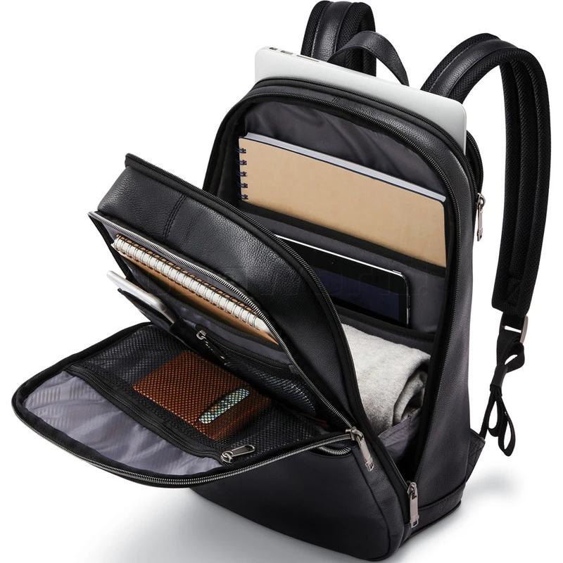 Main features of the Samsonite Classic Leather 14.1” Laptop & Tablet Slim Backpack include: