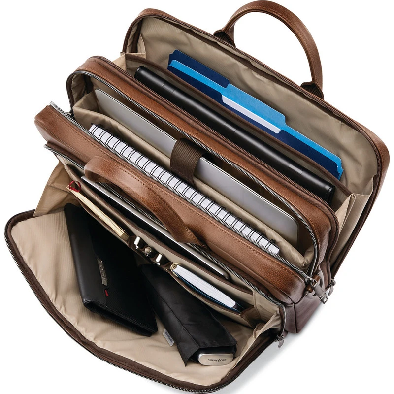 Samsonite Classic Leather 15.6″ Laptop & Tablet Toploader Briefcase Cognac 26039