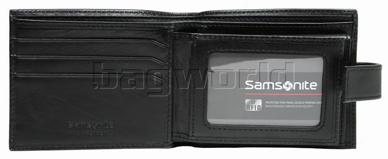 Samsonite RFID blocking wallets protect against payment and identity fraud from unwanted skimming of your credit cards. The range incorporates an internal layer of metallic material which is placed in between the outer layer of leather and the internal lining, blocking RFID skimming of your credit cards. Made from full grain calf hide leather.