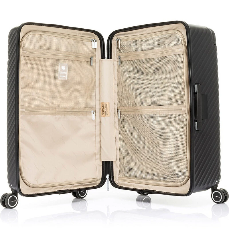 The Samsonite Stem trunk range features an innovative 20:80 split inspired by the opening of a softside suitcase, with the protection of a hardside exterior. The internal dividers assist with packing organisation, while the unique opening and maximised base allows for increased packing space. This trendy luggage collection features stunning gold detailing, alongside a wide range of features including anti-theft locks for extra security, suspension wheels and wide handles for easy manoeuvrability making Stem both fashionable and functional.