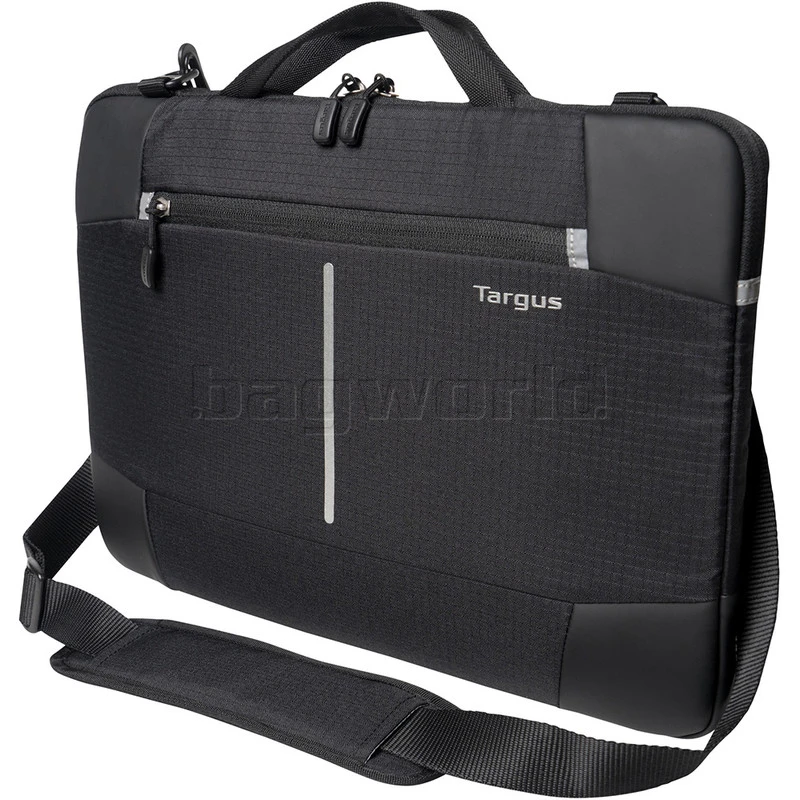Protect your laptop on the go with a Targus Bex II laptop sleeve. A combination of on trend materials & reflective accents keeps your tech gear protected no matter where life takes you. This sturdy lightweight range combines weather-resistant rip stop fabric, soft polyurethane, and durable padding to cushion your laptop from surface damage.