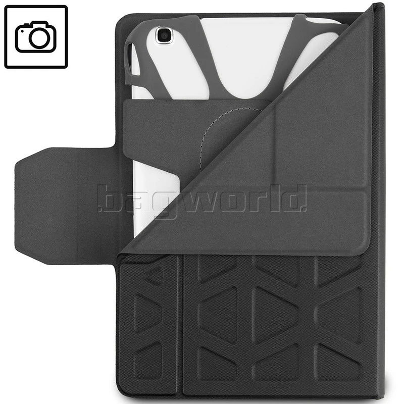 The Targus Pro-Tek Rotating Universal Case for 7-8″ Tablets, Tab A, E, S2 offers advanced engineered protection for your 7-8” device. The multi-fit tablet case with a stretchy, shock-absorbing silicone system grips your device on all four corners and secures it safely inside. 360° rotating design offers hands-free portrait and landscape viewing. Exterior design is easy to grip and water-resistant with a reassuring magnetic closure to keep your device protected. Simply fold back the corner of the cover to reveal your device camera lens and take photos inside the case.