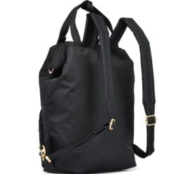 - Made of water and stain resistant Polyester material and accented in raw gun-metal hardware