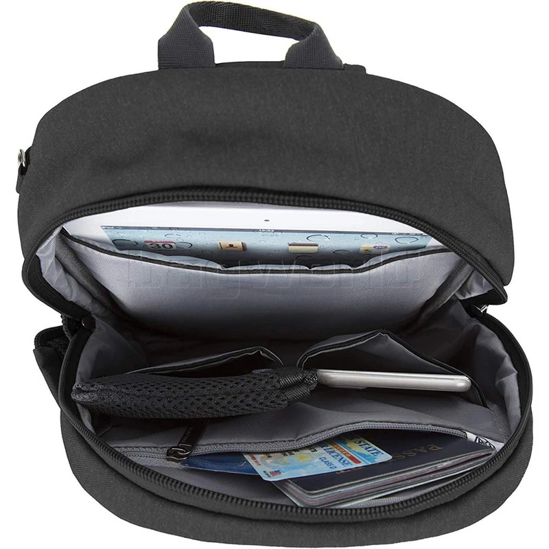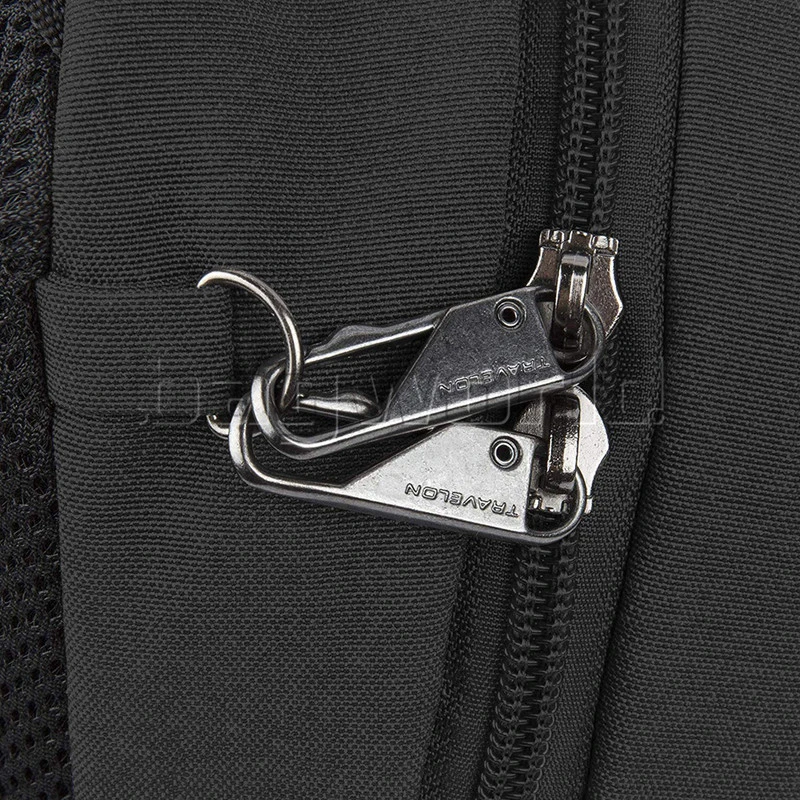 - Full Anti-Theft features include surround slash-resistant body panels and shoulder strap; locking compartments; lockdown strap